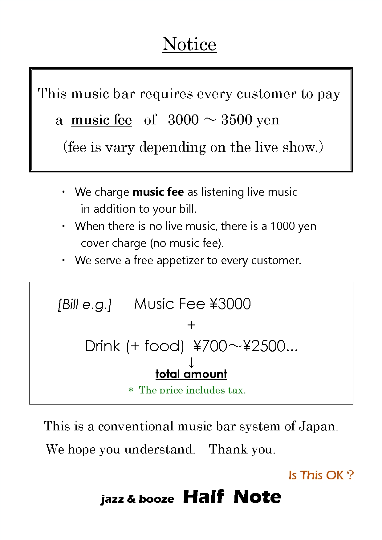 Half Note is a jazz club where top professional jazz musicians from Hokkaido perform live every day.